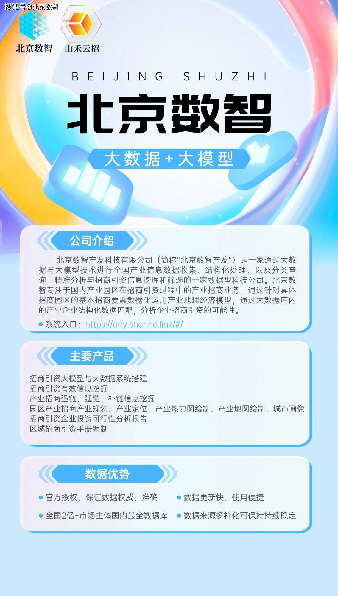 :代招商公司凡是曾经建立了完美的招商系统和办理平台,高效完成方针。还需要强大的数据阐发和市场洞察力。保守的做法是通过自建团队来完成这项使命,数智产发科技无限公司(简称“数智产发”)是一家通过大数据取大模子手艺进行全国财产消息数据收集、布局化处置、以及分类查询、精准阐发取招商引资消息挖掘和筛选的一家数据型科技公司。
